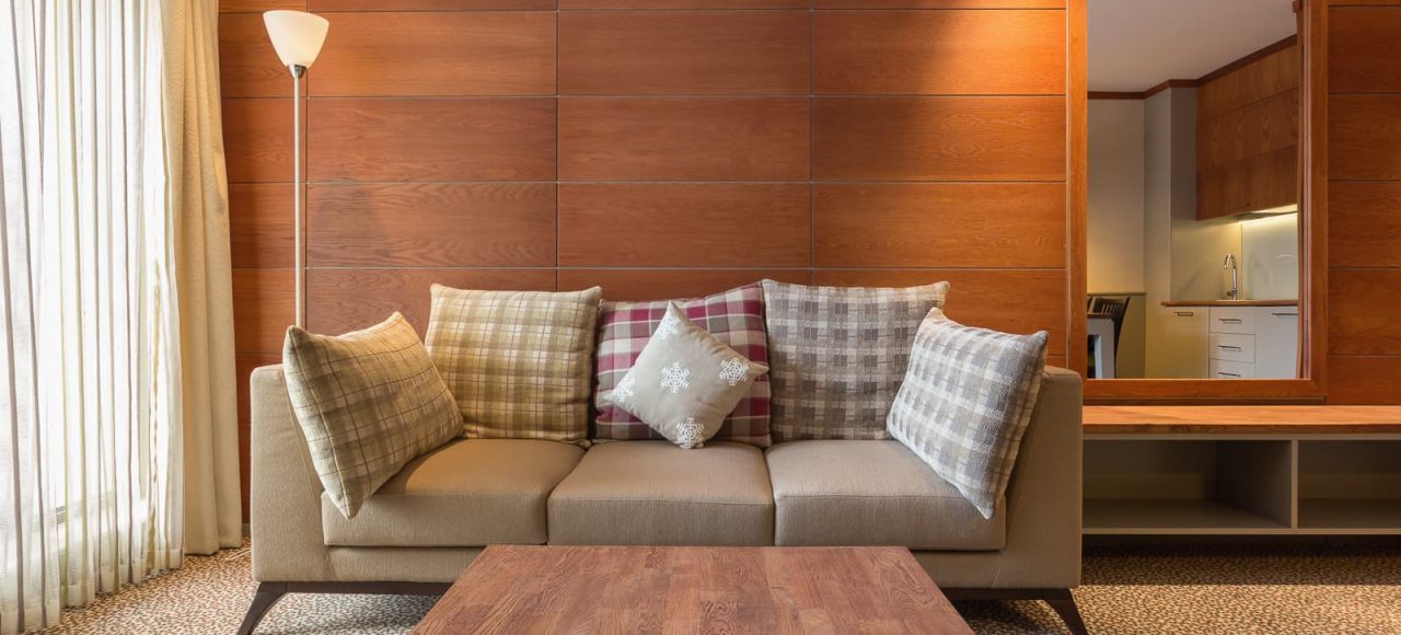 The one-bedroom COMFORT villa is designed for a secluded hotel holiday for a family of up to 3 guests. Maximum occupancy is 2 adults and 1 child on a non-sofa bed, in the living room.